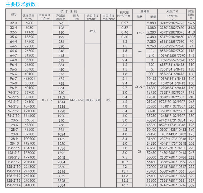 氣箱式脈沖袋式除塵器綜合了分室反吹和脈沖噴吹清灰各類除塵器的優點,克服了分室反吹時動能強度不夠的缺點,采用離線清灰技術,擴大了袋式除塵器的應用范圍,提高了除塵效率,延長了濾袋的使用壽命。特點是適宜高濃度工況環境使用(含塵氣體濃度可達1000g/m3以上)。廣泛應用于水泥行業的立窯、破碎、包裝、庫頂、熟料冷卻機和各種磨機等除塵系統,以及冶金、化工、機械和鍋爐等行業的收塵。